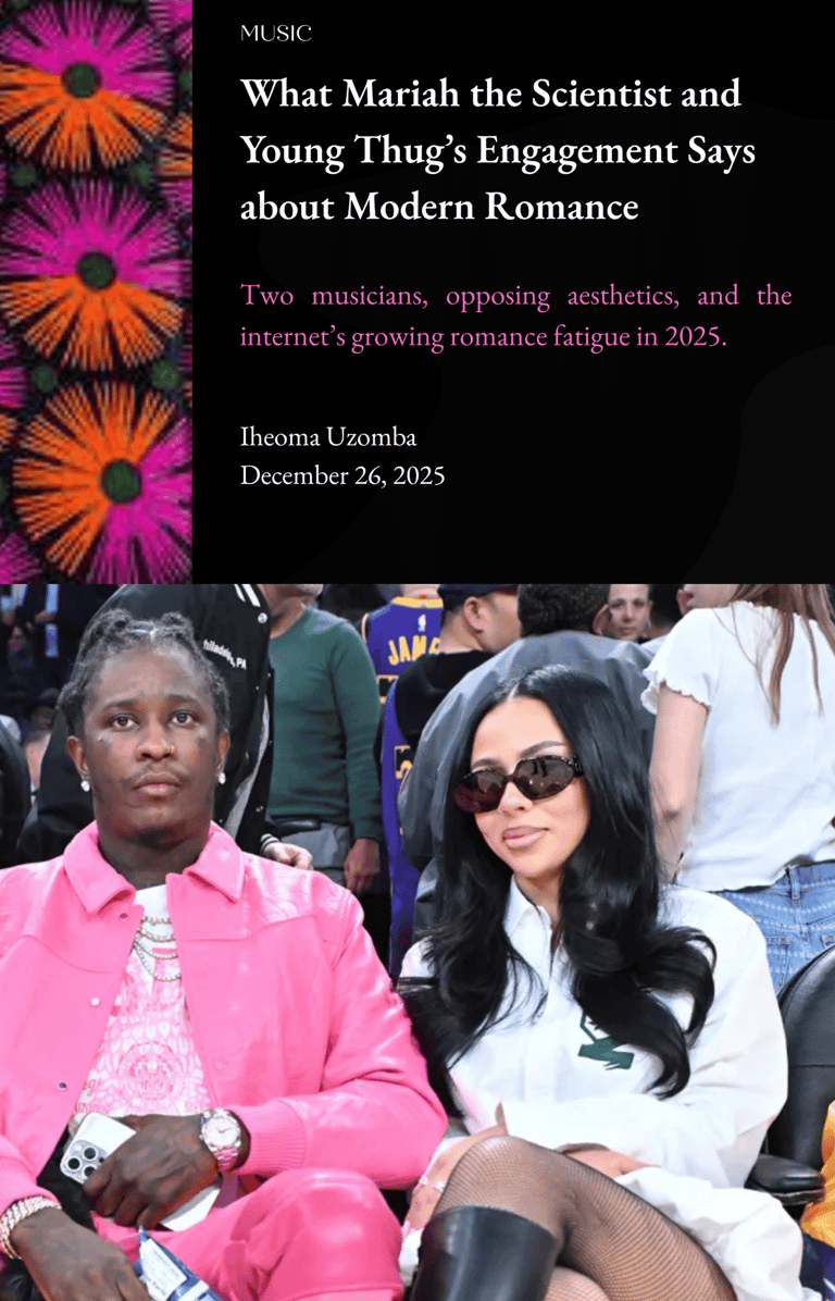 In a recent article on Vogue, Chanté Joseph asked a question that feels almost uncomfortably timely: “Is having a boyfriend embarrassing now?” Judging by the internet’s response to Young Thug and Mariah the Scientist’s engagement, one might argue that modern romance, particularly within heterosexual relationships, has become something to be somewhat ashamed of.